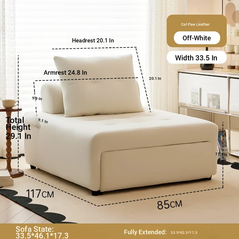 33.46in creamy-white (adjustable backrest) [Abrasion Resistant cat skin]]