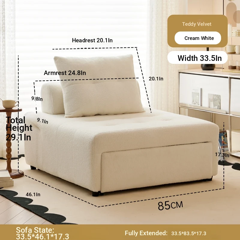 33.46in milk White (adjustable backrest) [Comfortable Teddy velvet]]