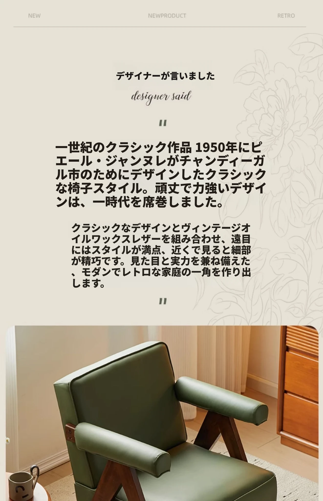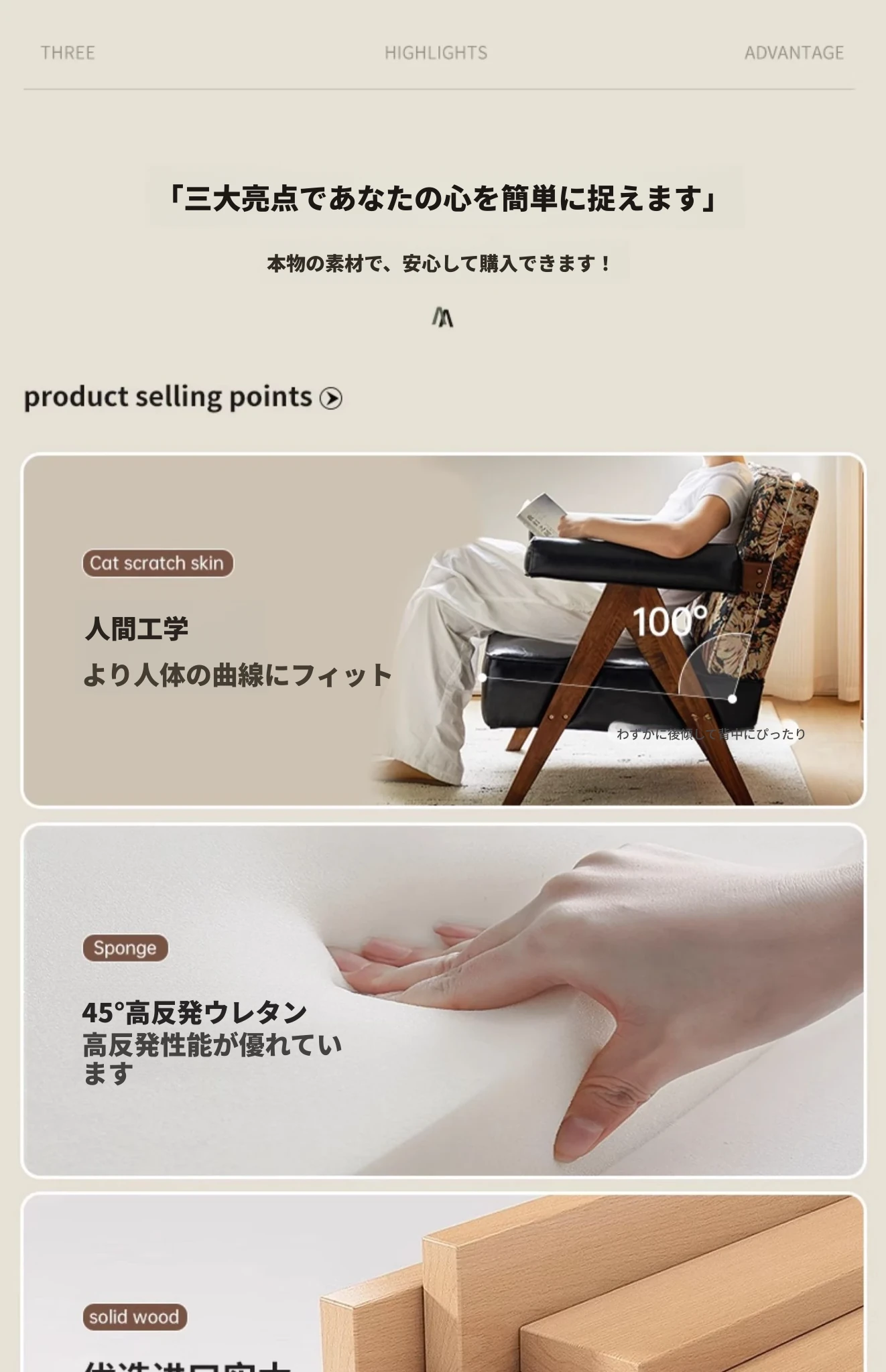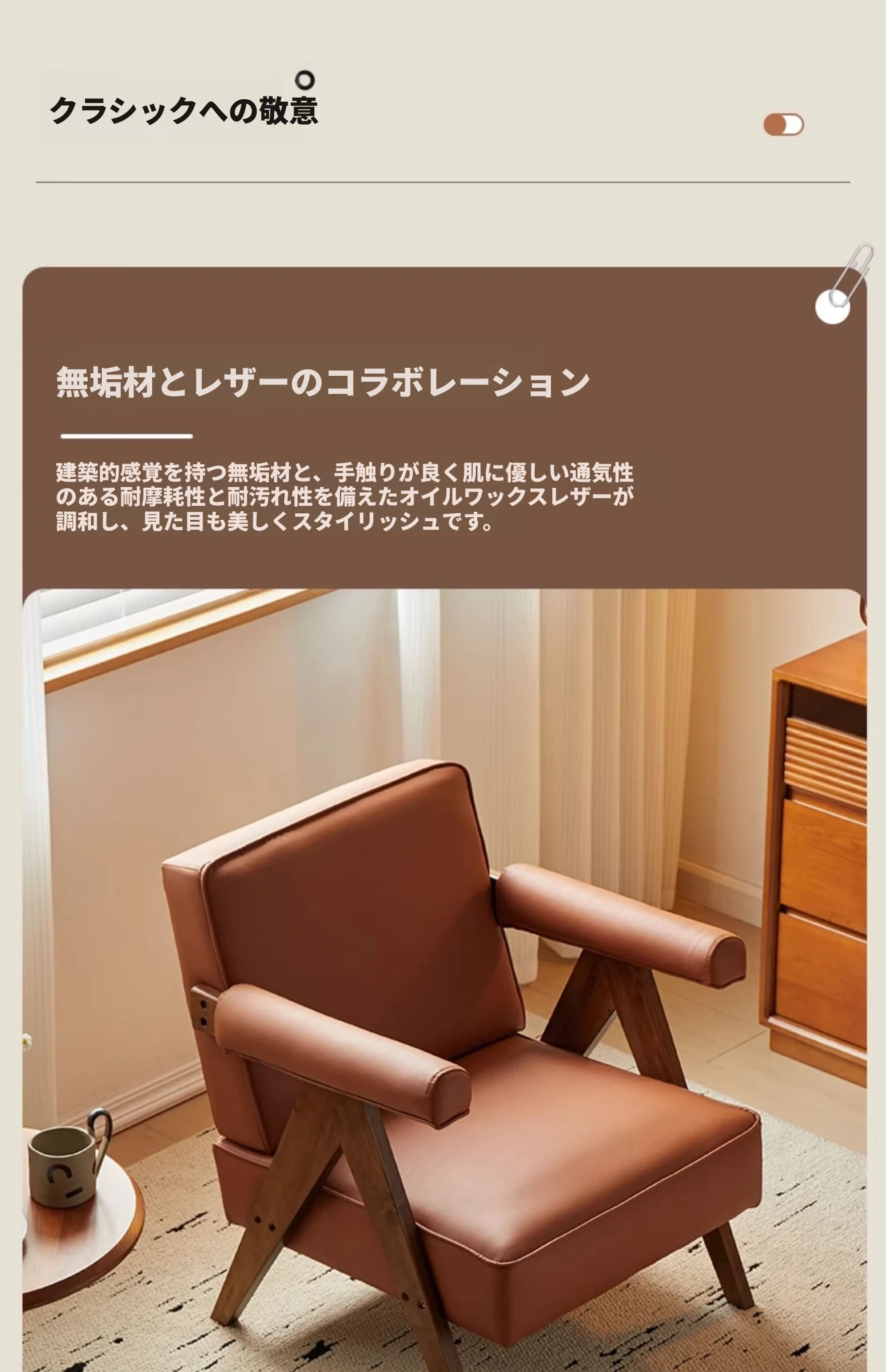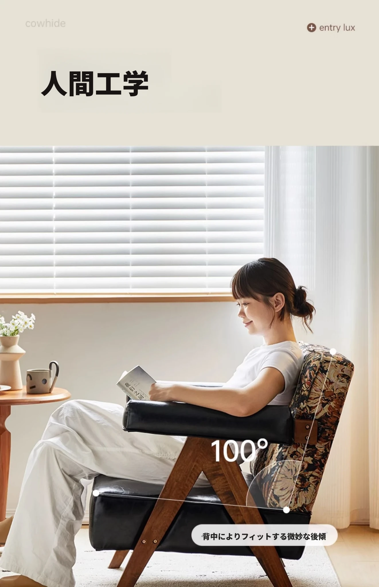 レトロな一人掛けソファ椅子 - 高級感漂う無垢材使用のリビング休憩椅子。ヴィンテージスタイルで、バルコニーにもぴったりな背もたれ付き。おしゃれで快適な空間を演出!
