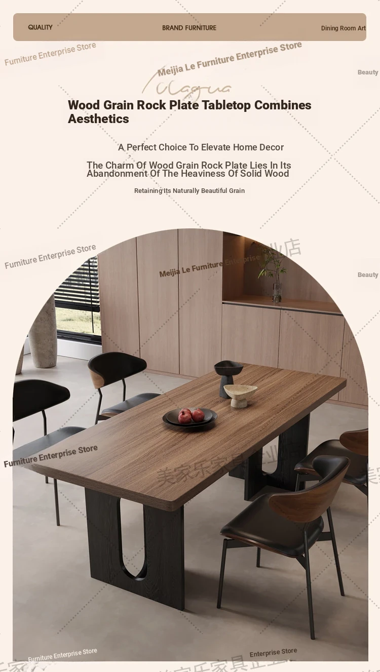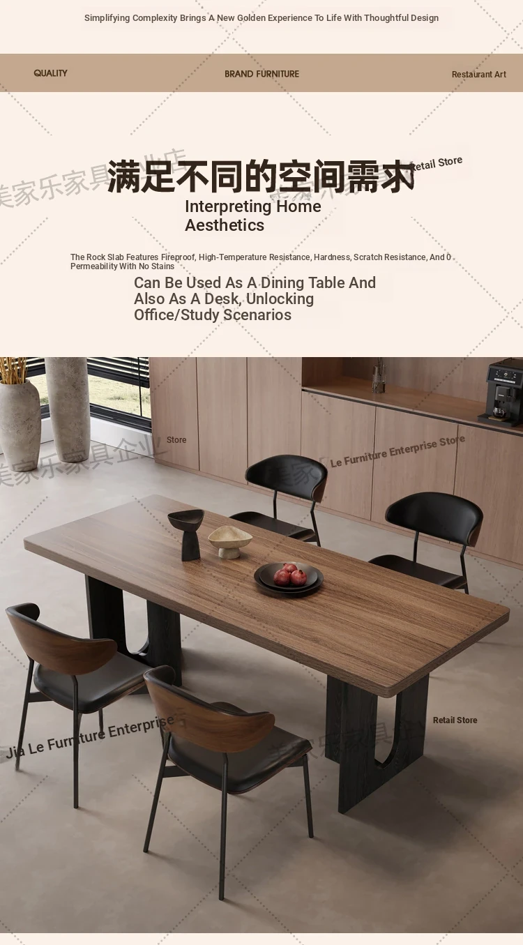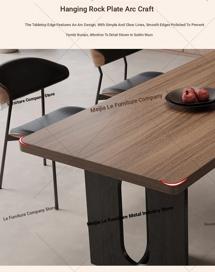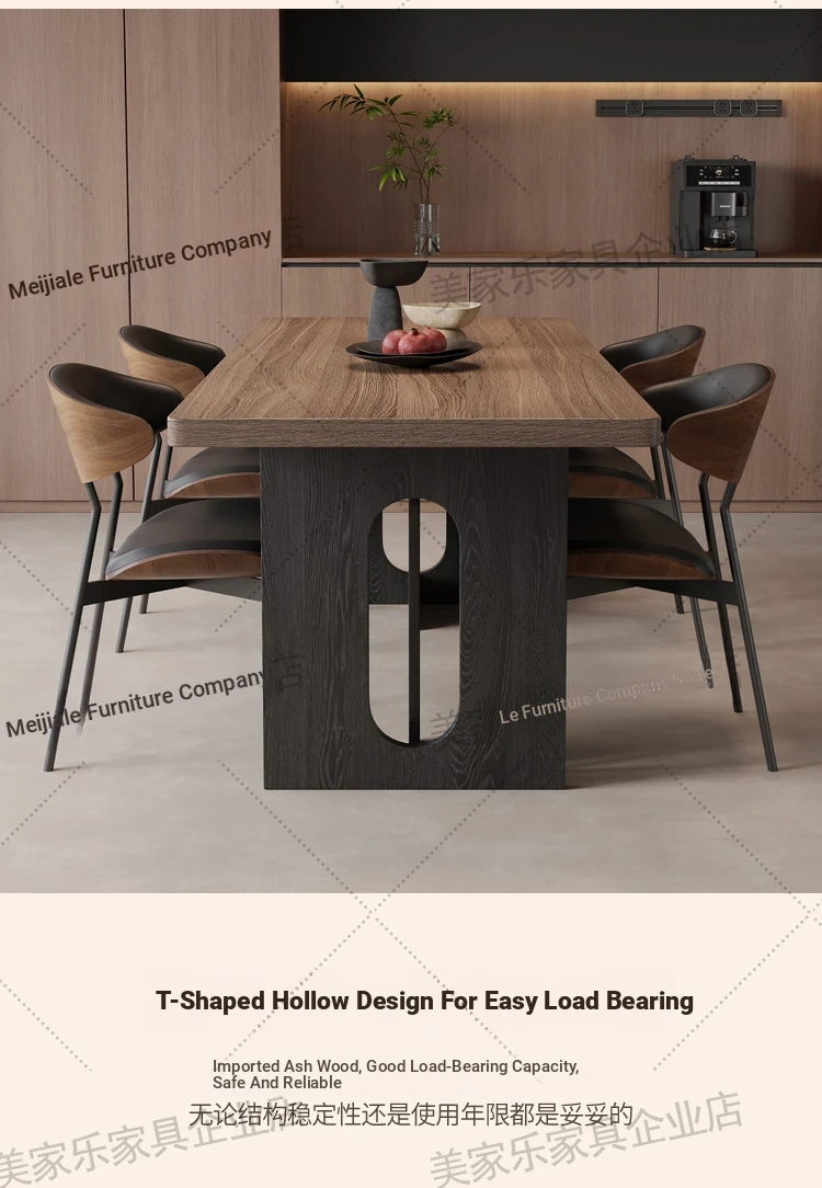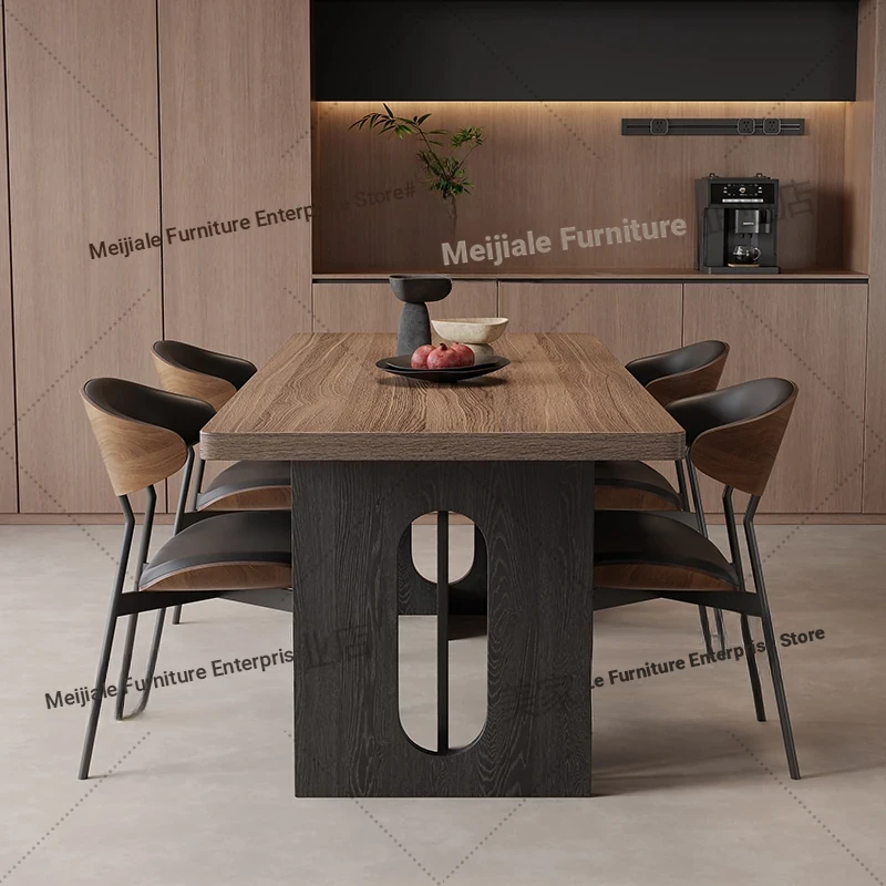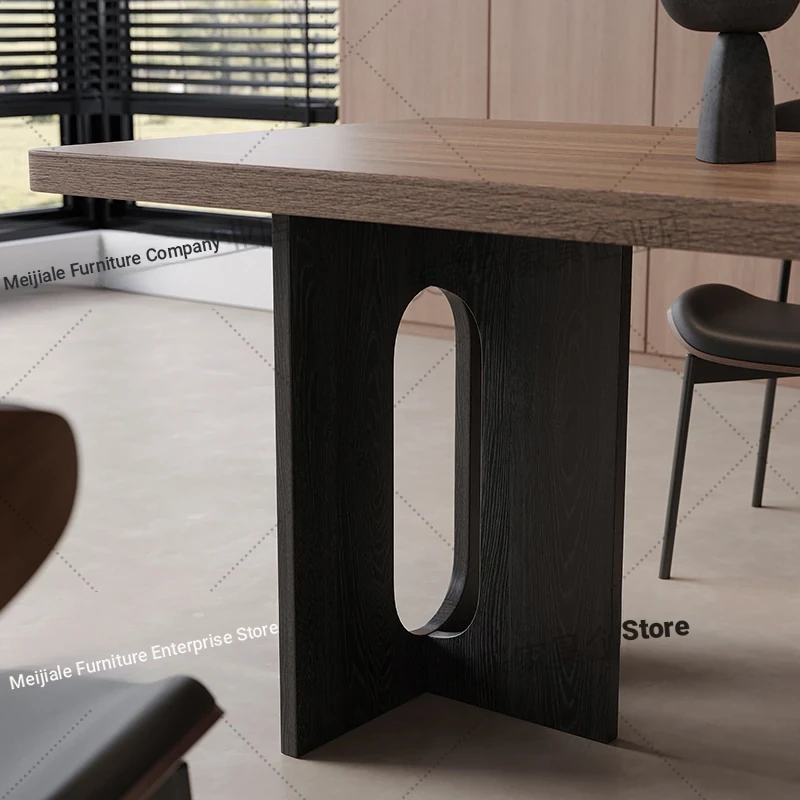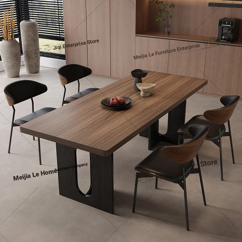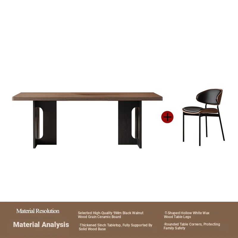 Vintage Style Rectangular Dining Table with Black Walnut Finish - Elegant Hanging Stone Design, Perfect for Home Use, Scandinavian Solid Wood Charm
