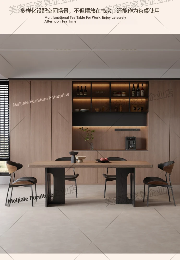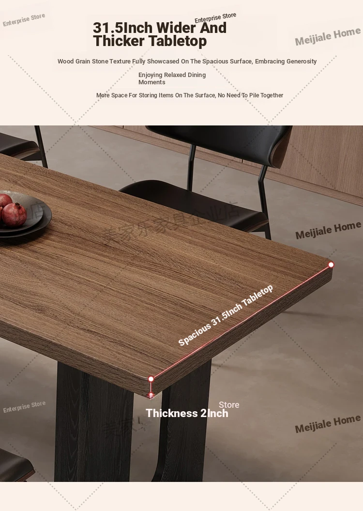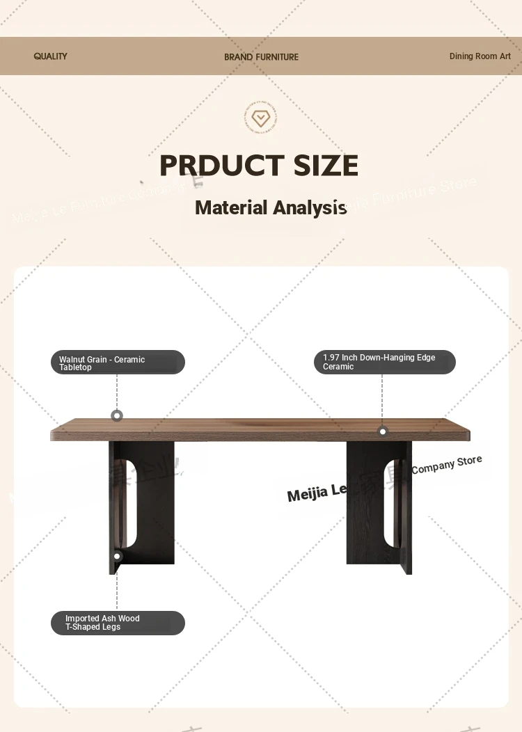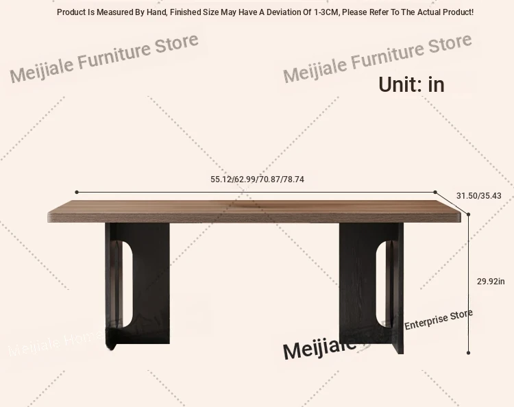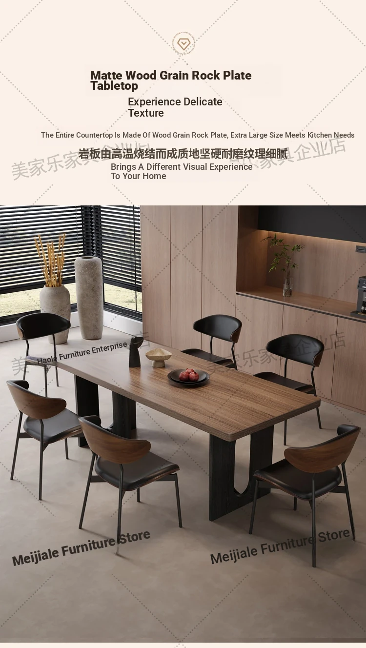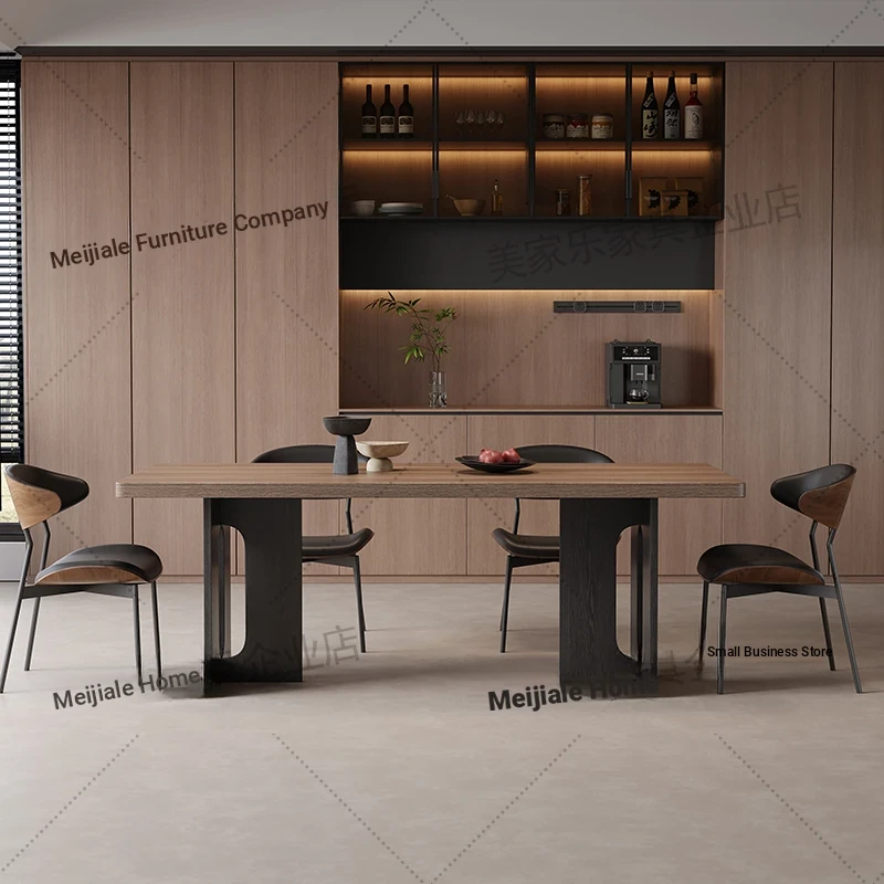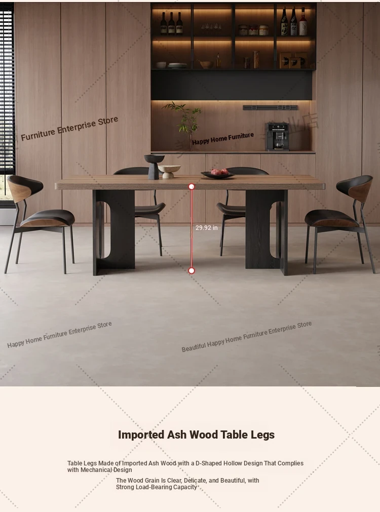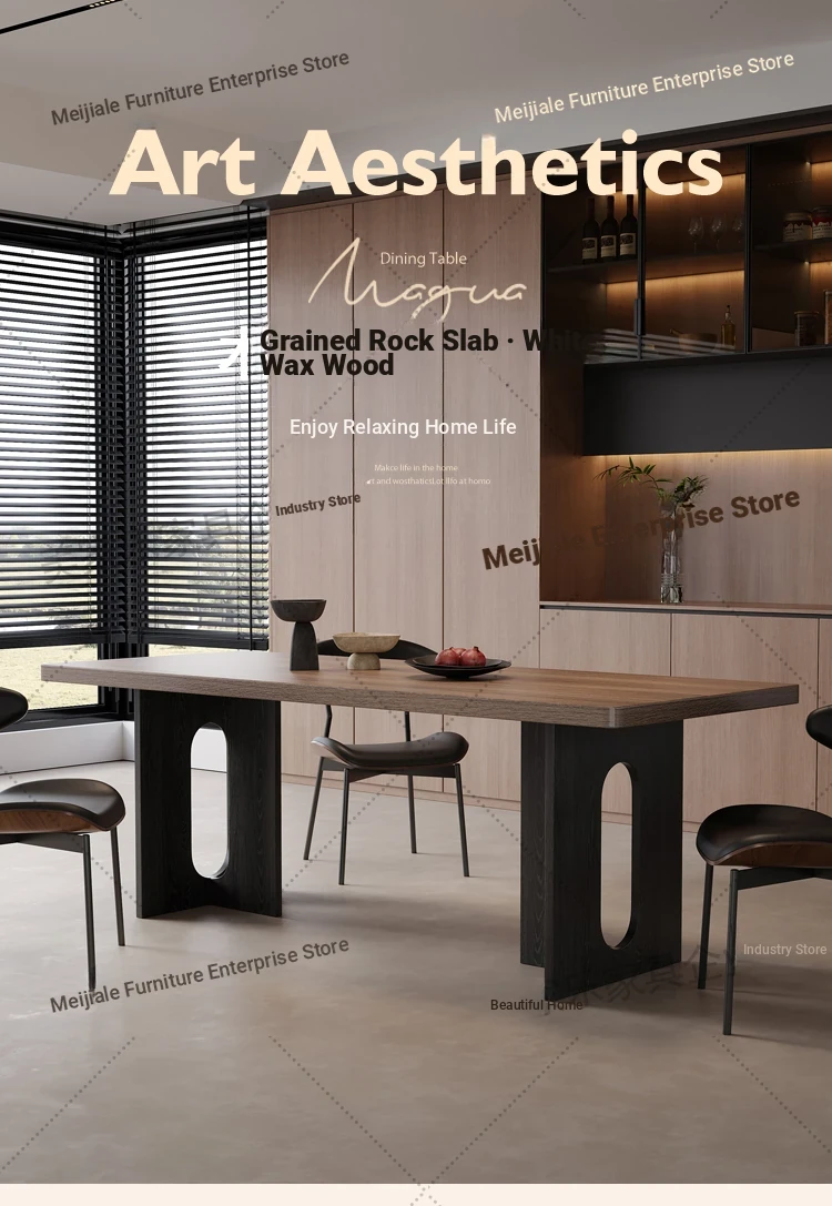Vintage Style Rectangular Dining Table with Black Walnut Finish - Elegant Hanging Stone Design, Perfect for Home Use, Scandinavian Solid Wood Charm