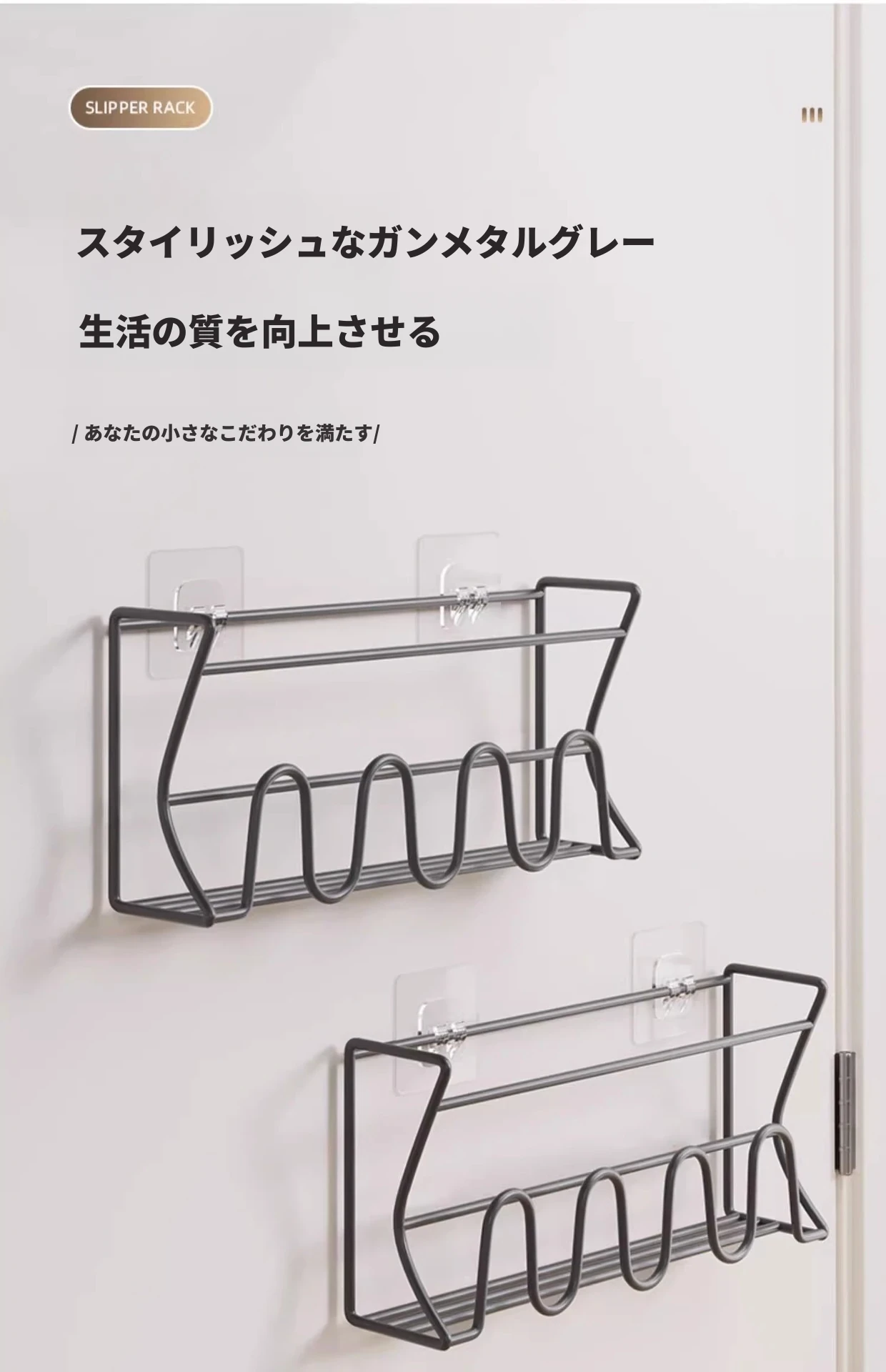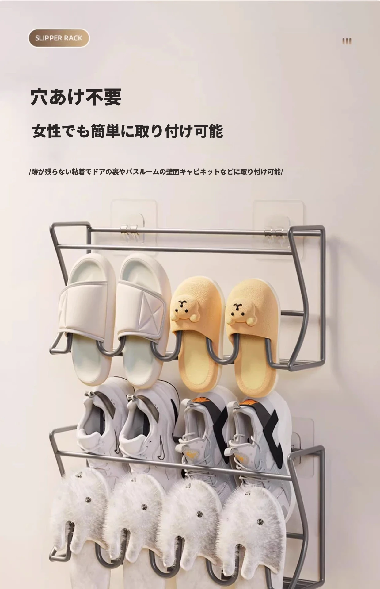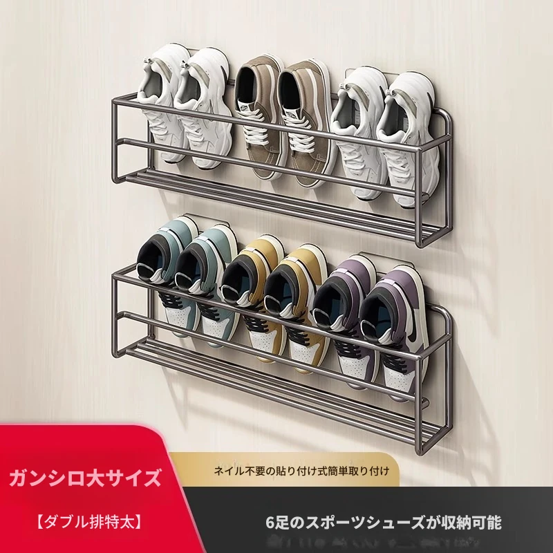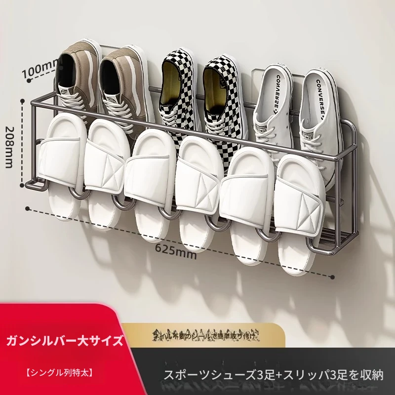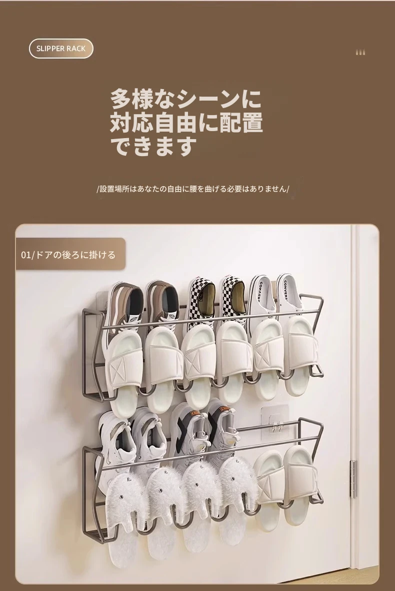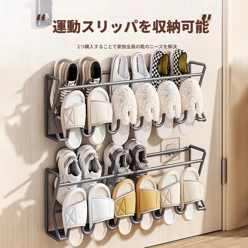 ドア後の靴ラック 壁掛け式 シンプル収納神器 穴あけ不要 浴室用 壁面収納 スリッパラック 省スペースでおしゃれなデザイン!宿舎や家庭に最適、整理整頓が簡単に!