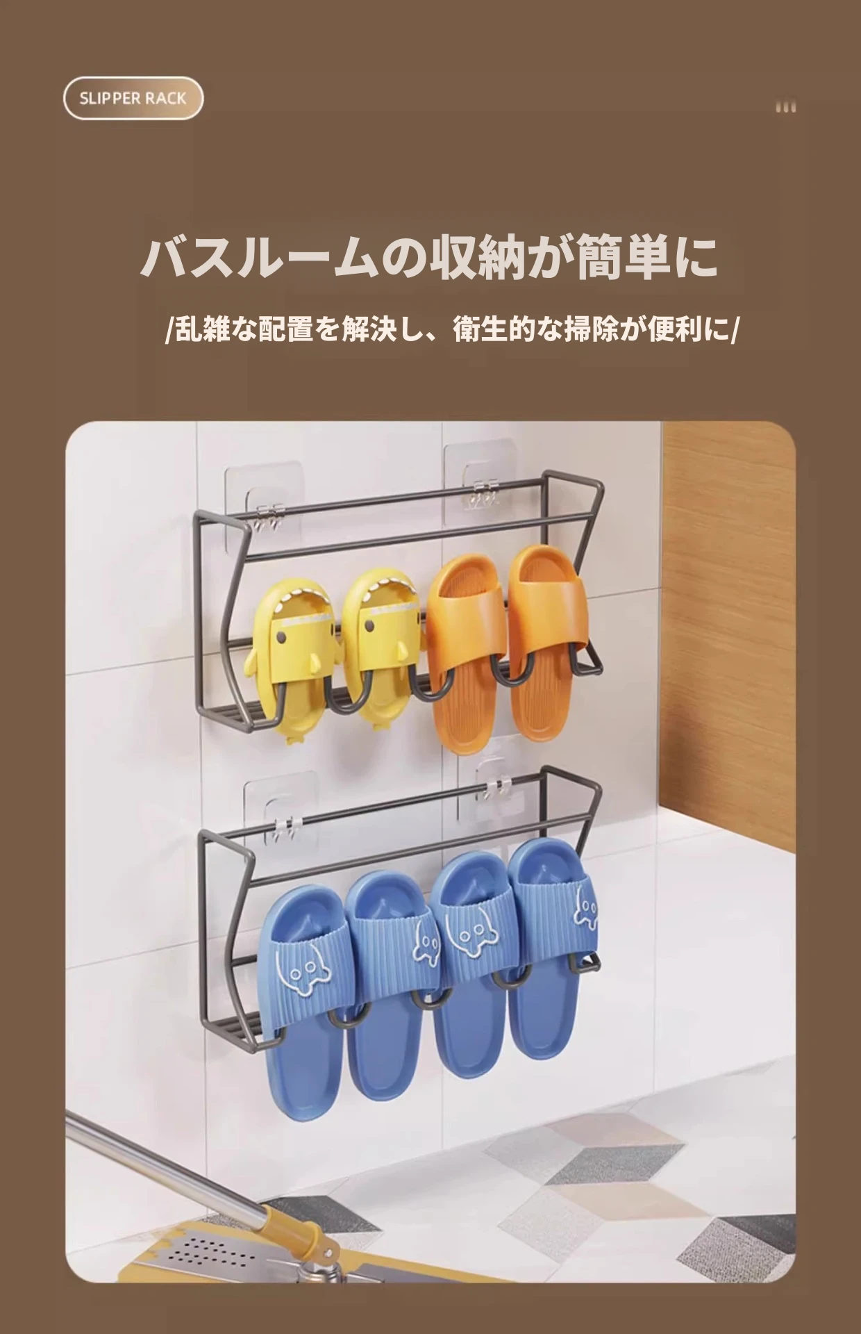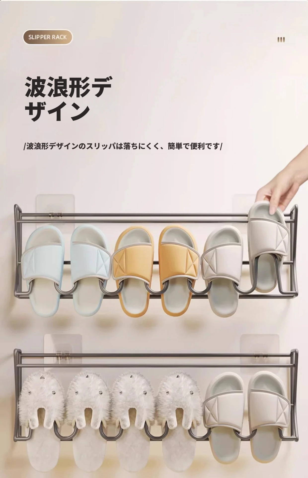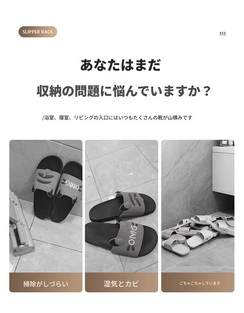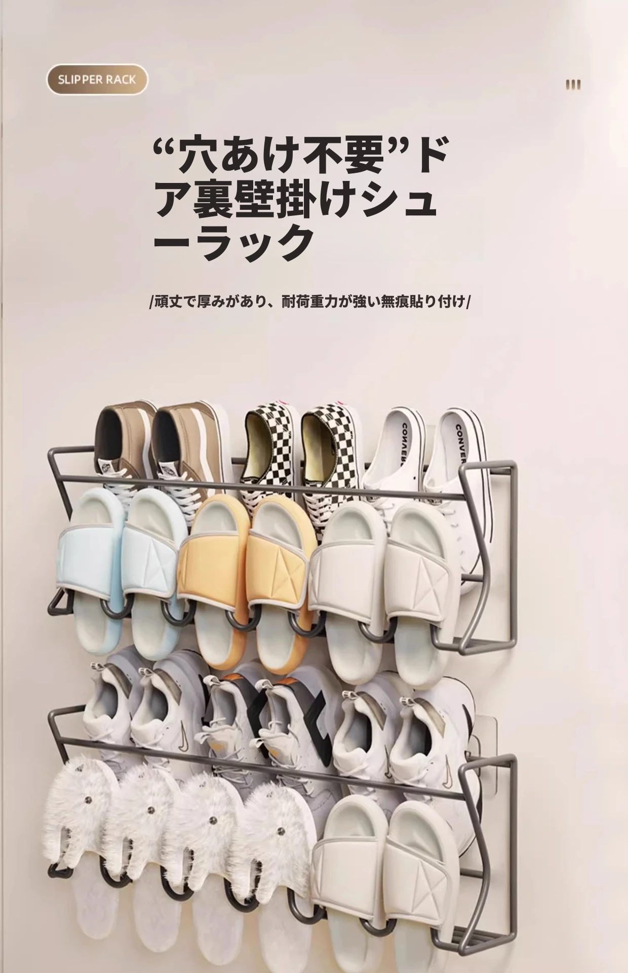 ドア後の靴ラック 壁掛け式 シンプル収納神器 穴あけ不要 浴室用 壁面収納 スリッパラック 省スペースでおしゃれなデザイン!宿舎や家庭に最適、整理整頓が簡単に!