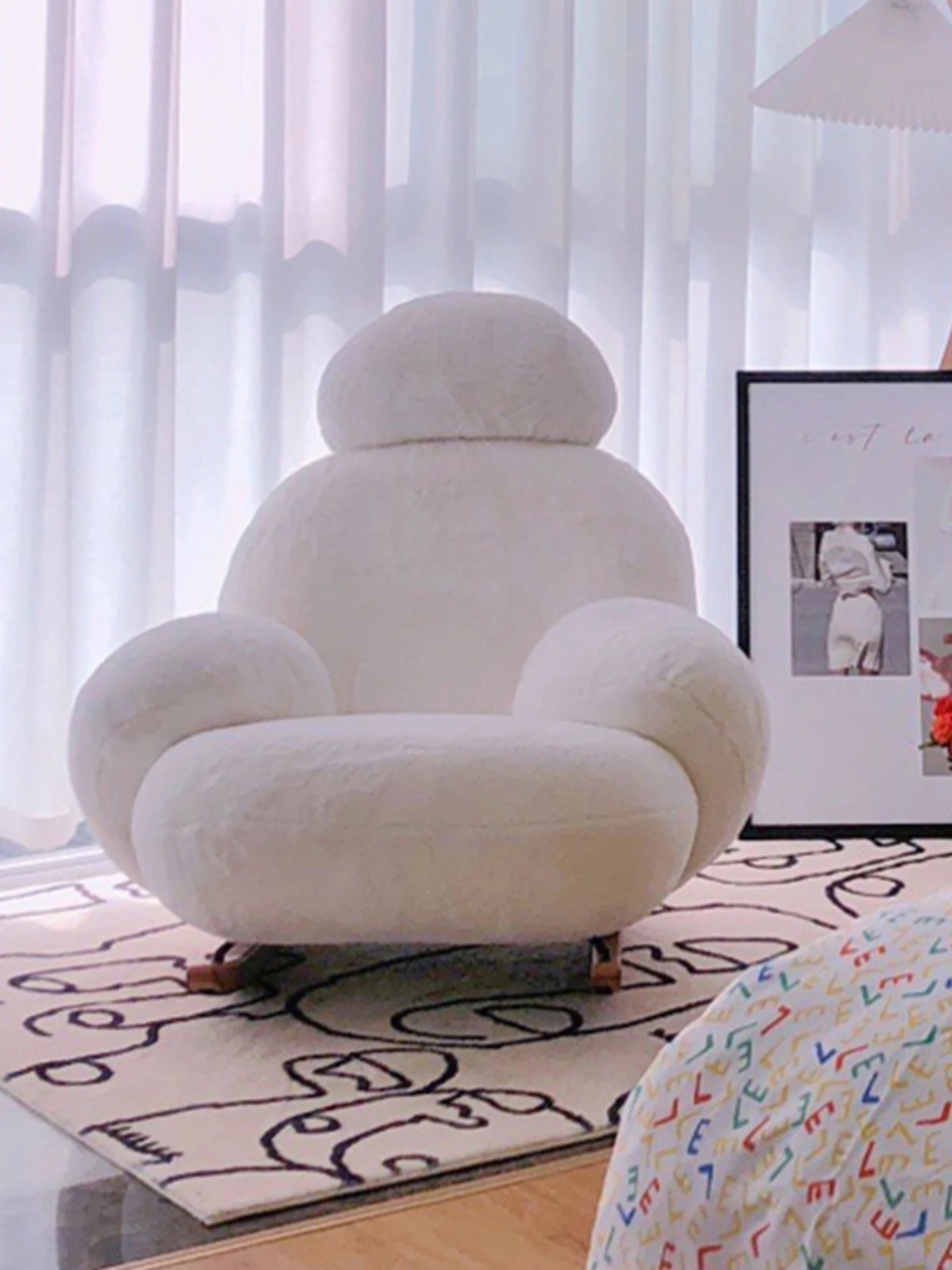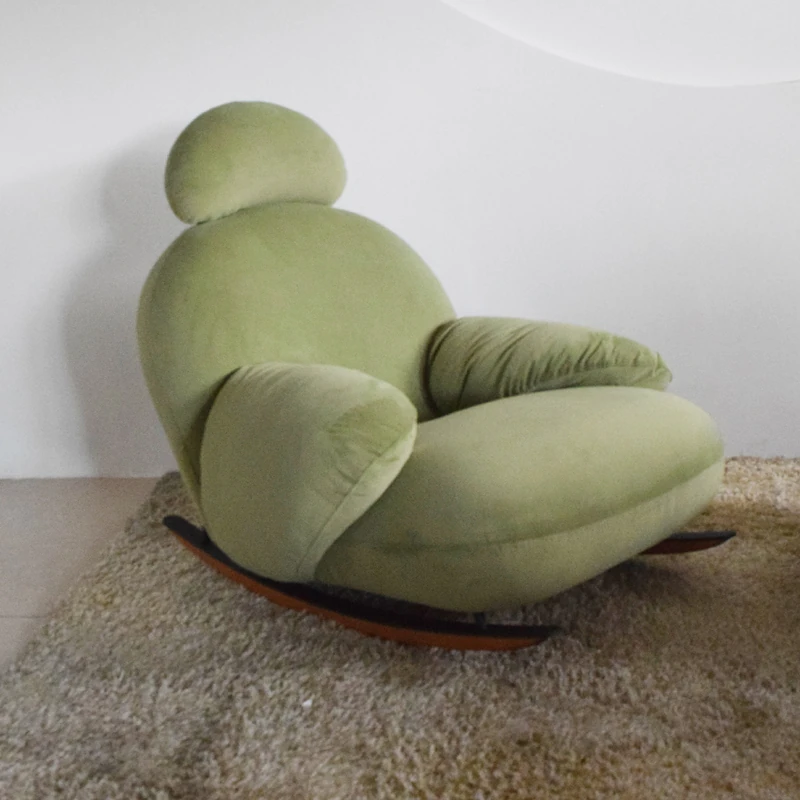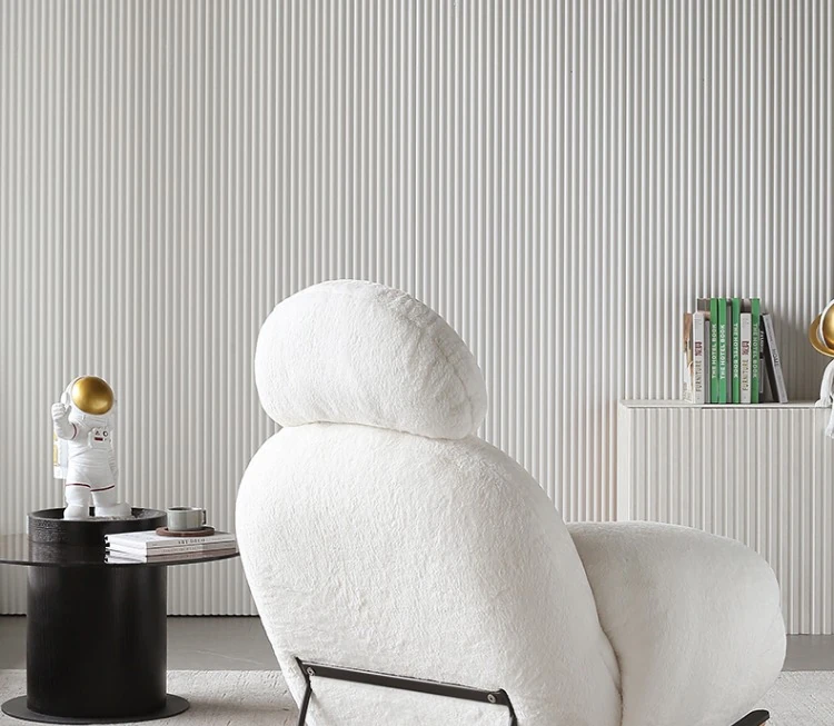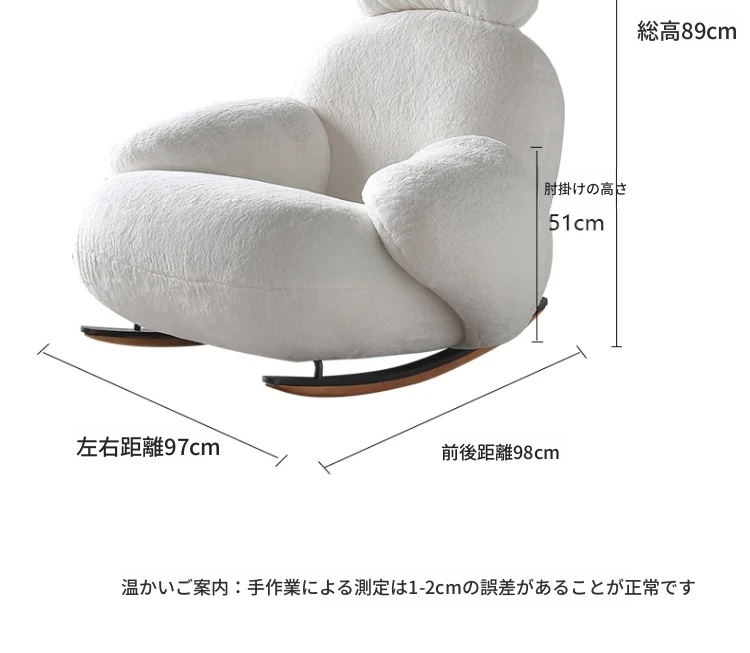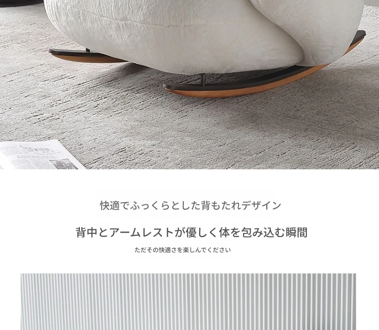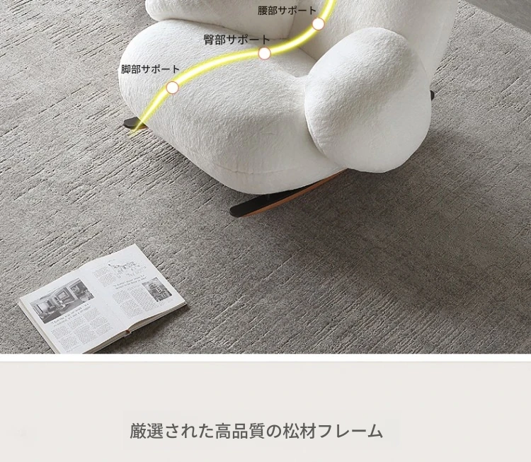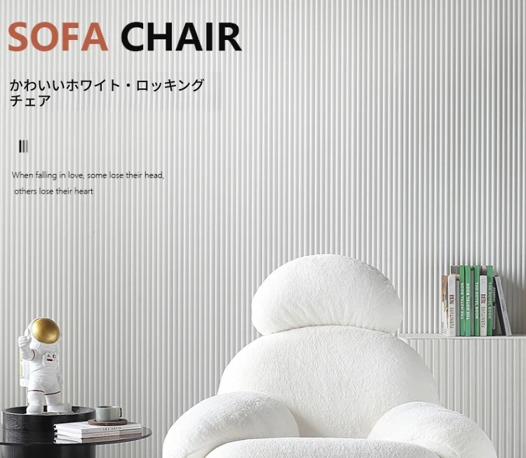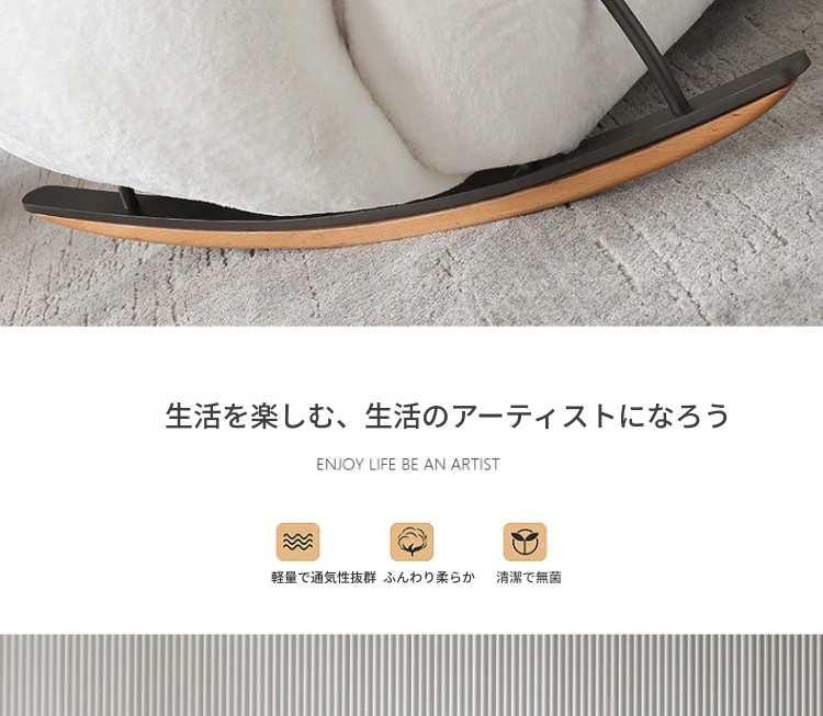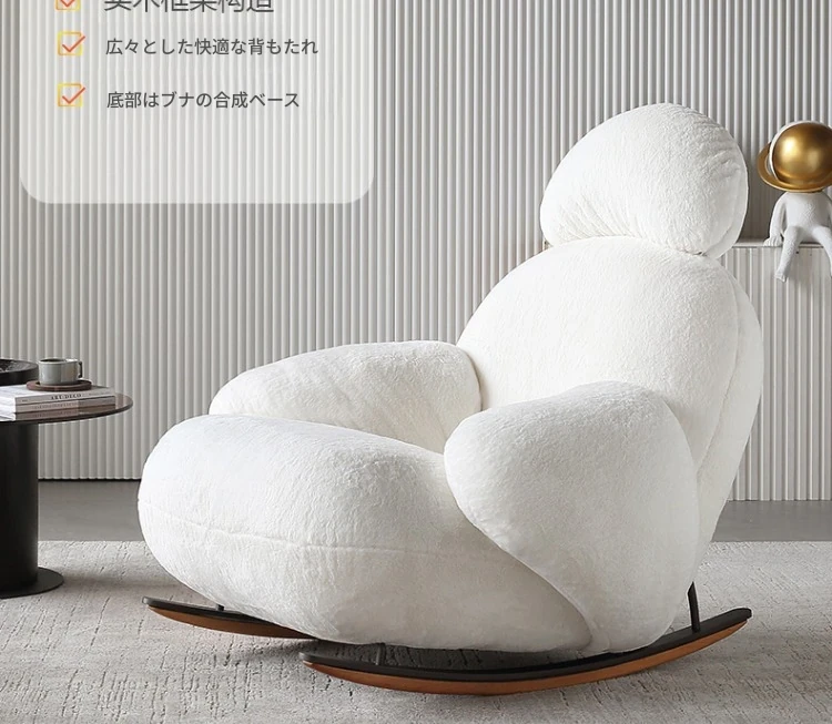 意美家の大白ロッキングチェア - リビングやバルコニーに最適な大人向けのリラックスチェア。人気のラウンジスタイルで、贅沢感と快適さを兼ね備えた一人用ソファ。あなたのくつろぎタイムをより特別に!