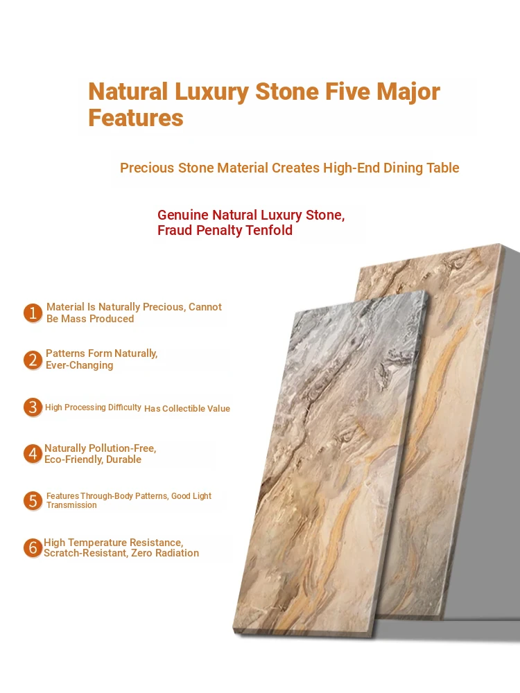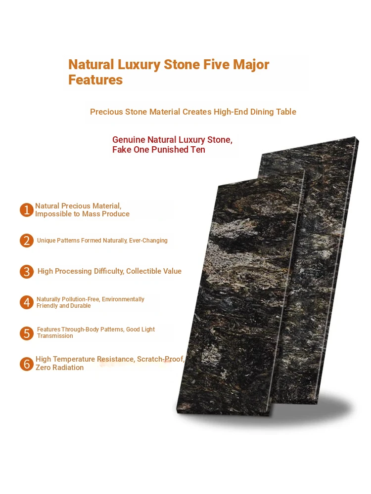 Jiangcheng Natural Snow Mountain Orchid Luxury Stone Dining Table – Elegant Italian-Inspired High-End Villa Dining Set with Premium Natural Stone Table and Chairs for Upscale Restaurants