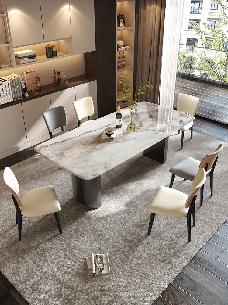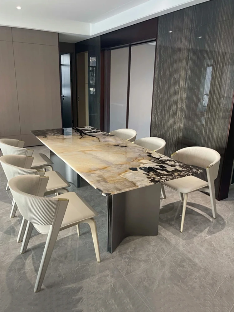 Pure Natural Pandora Luxury Stone Rectangular Dining Table - Italian Light Luxury for High-End Villas and Spacious Dining Rooms. Perfect for Elegant Entertaining!
