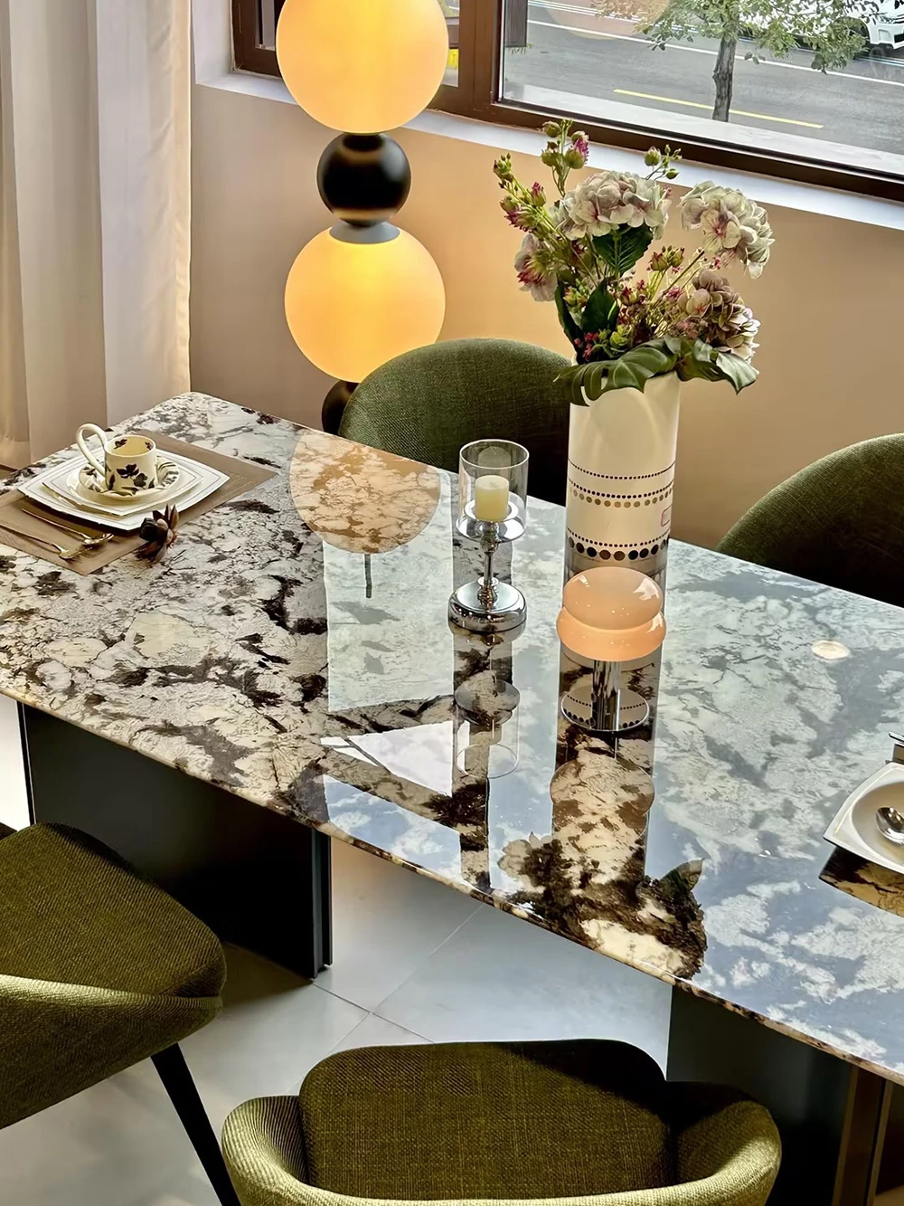 Elegant Marble Dining Table and Chair Set - Luxurious Rectangular Natural Crystal Stone Dining Table with Microcrystalline Finish for Sophisticated Dining Experience