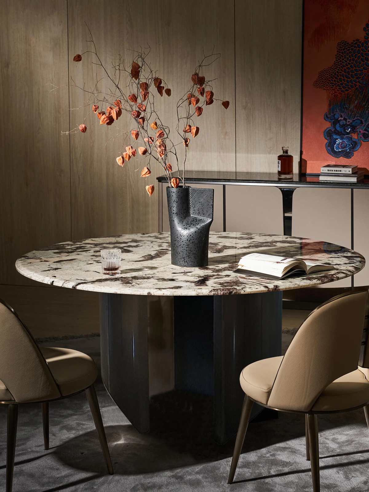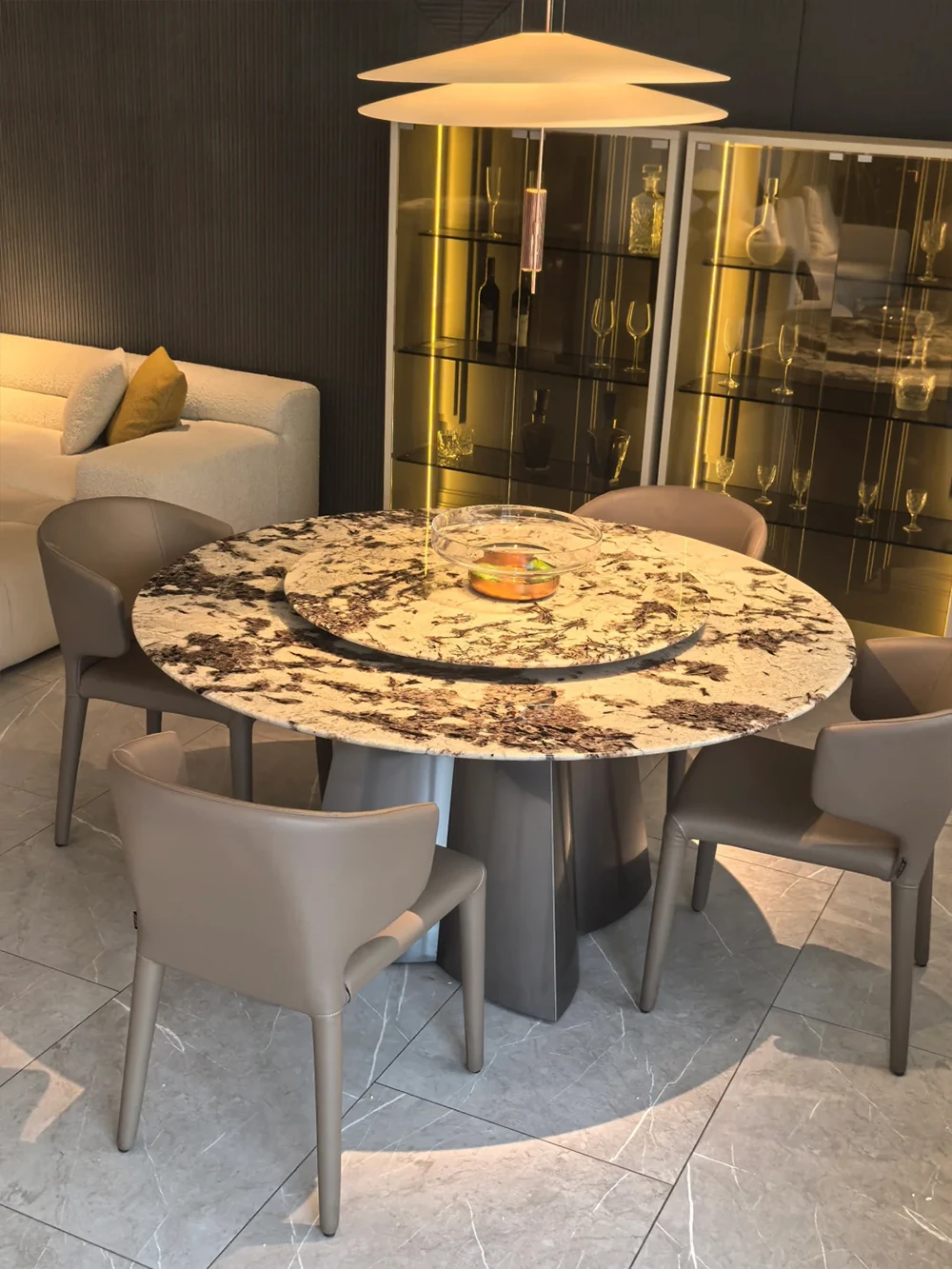 Ceng Cheng Natural Snow Mountain Flying Fox Luxury Stone Dining Table - Elegant Italian Design for High-End Villas and Spacious Dining Rooms with Round Table and Chairs
