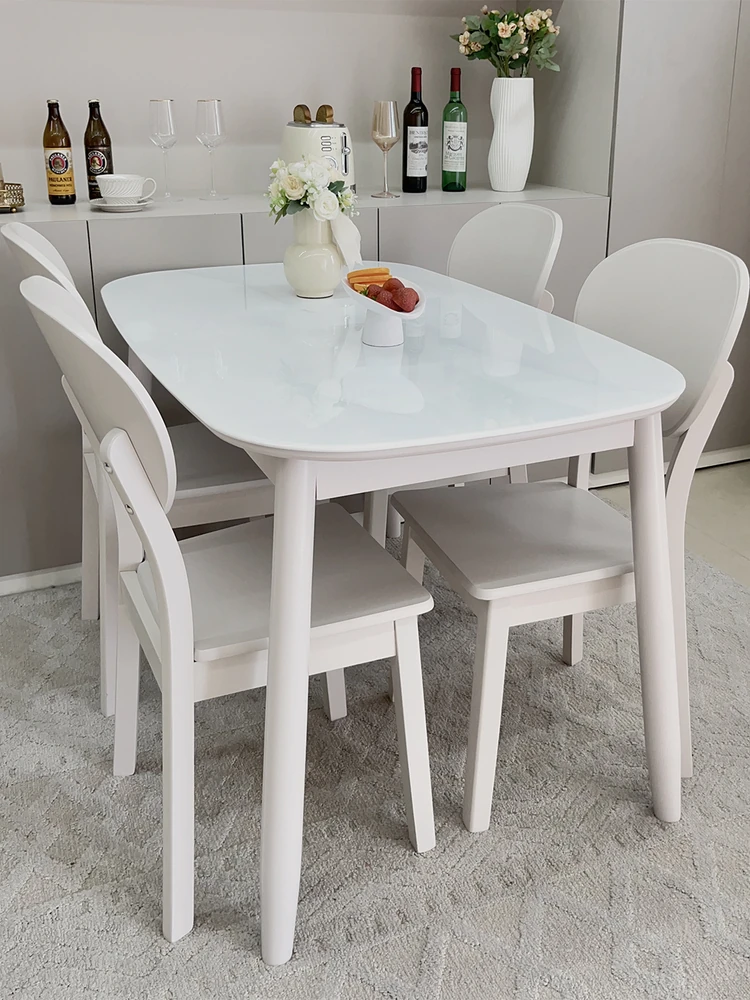 Modern Minimalist Solid Wood Dining Table Set for Small Spaces - Rectangular Marble Top, Stylish and Space-Saving, Perfect for Home Use