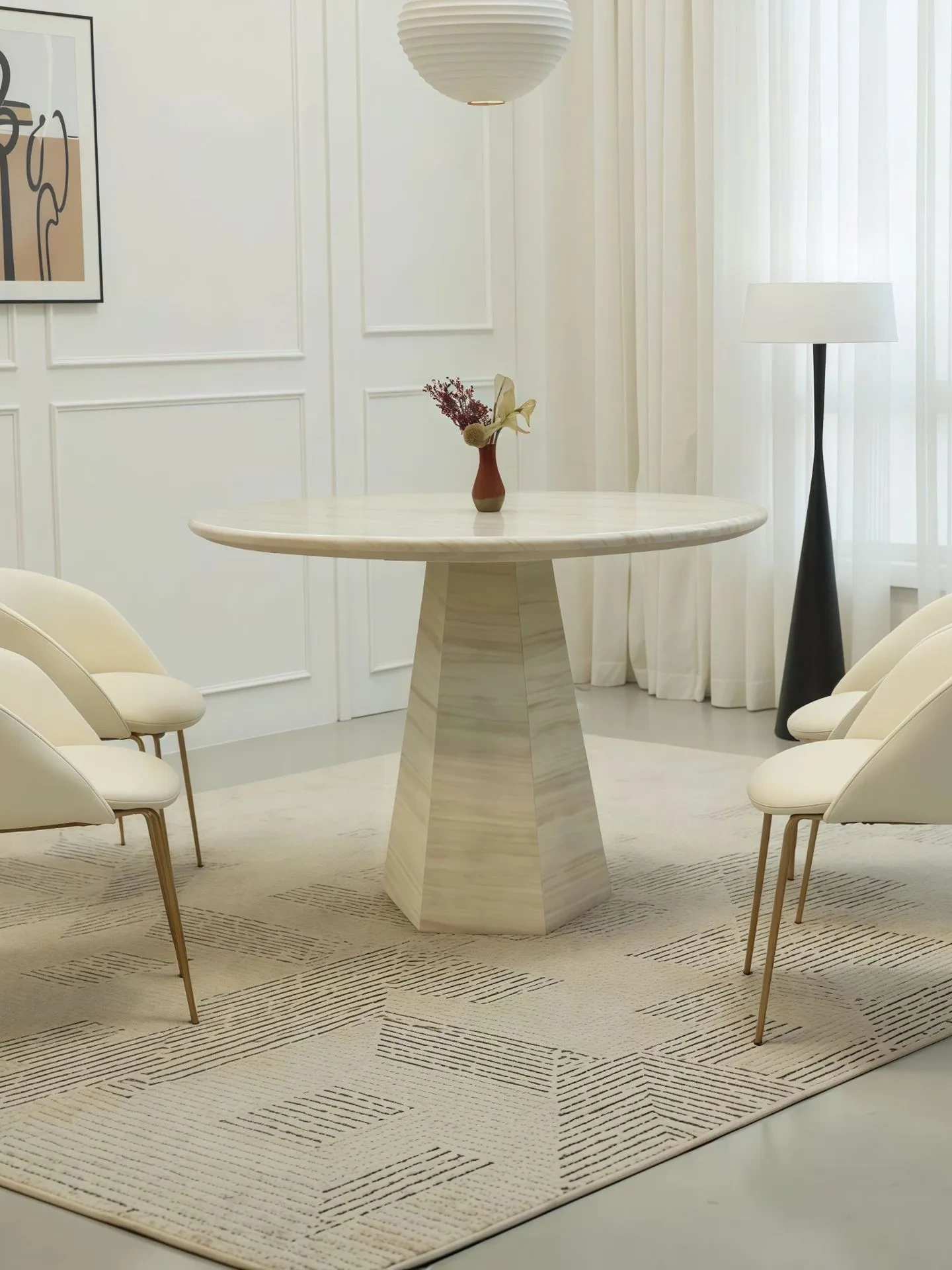 Elegant Round White Marble Dining Table Set by Cheng Cheng - Italian-Inspired Luxury for High-End Villas and Spacious Living Rooms. Perfect for Dining Rooms and Stylish Gatherings.